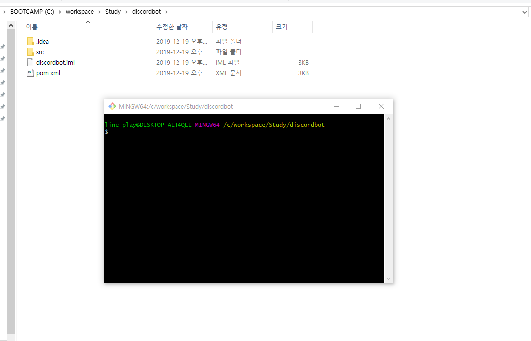 > Git Bash를 실행시킨 후 위에서 복사한 내용 실행