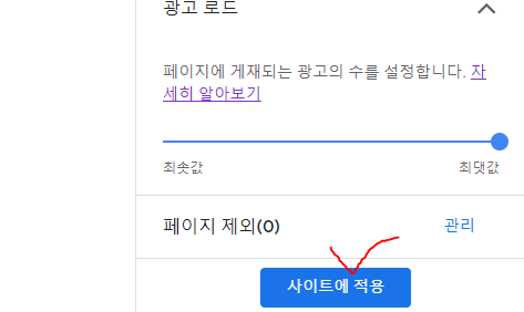 (9) 기왕하는거 Max 찍고 "사이트에 적용" 누르면 끝!