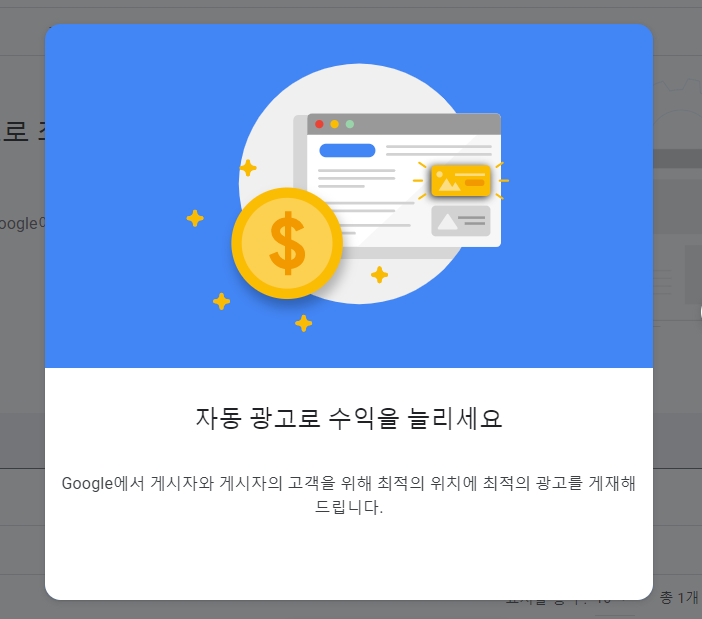 (10) 완료되면 애드센스 메인 홈페이지에 자동광고가 설정으로 변경되었음을 알수있음.