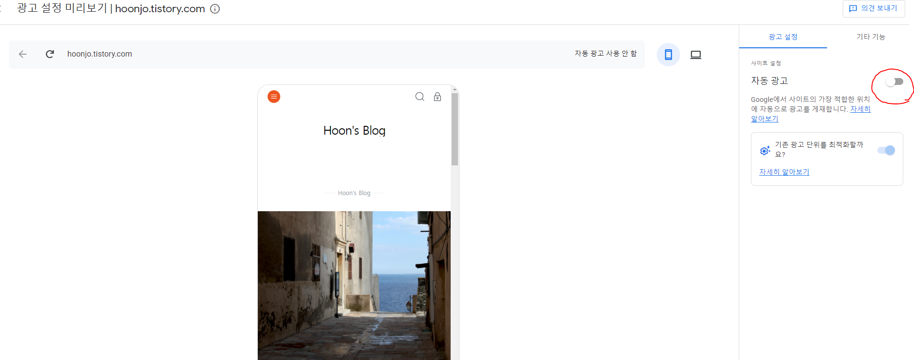 (4) 광고 노출 위치에 대한 설정은 바로 아래 광고 설정에서 설정하고 ..