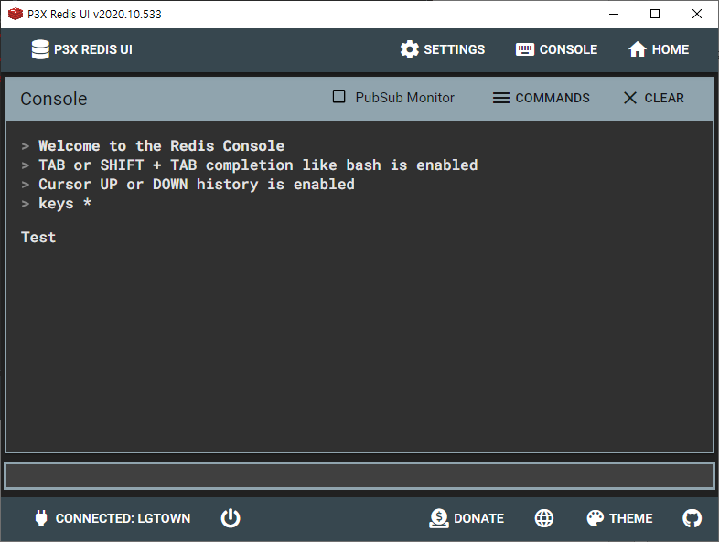 - 우측 상단의 "Console" 클릭 -> "keys *" 을 통한 모든 키 확인