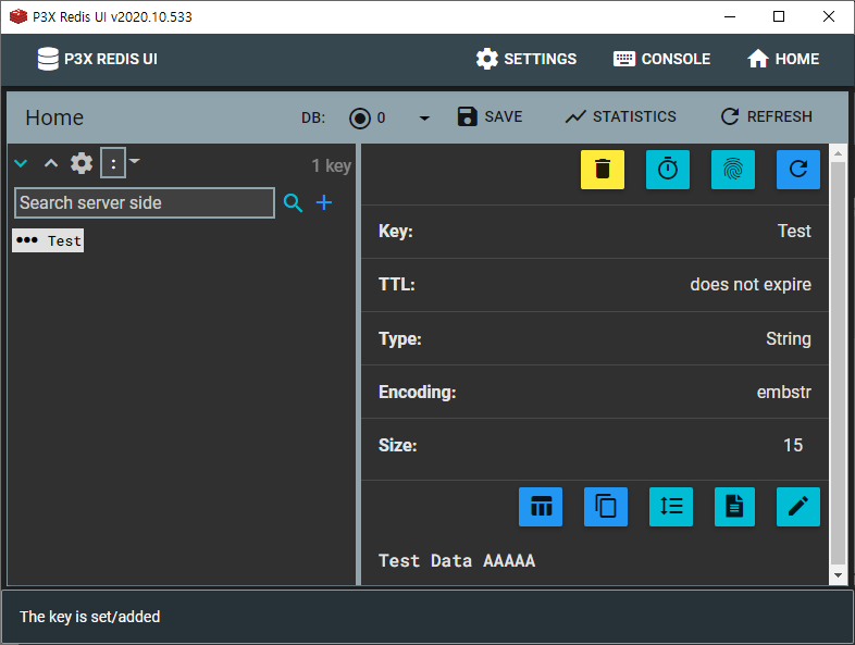 - Key : Test, Value : Test Data AAAAA가 정상적으로 추가되었음을 확인할 수 있음.