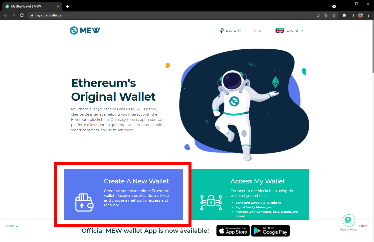 1-1. 마이이더월렛 접속 (www.myetherwallet.com/) 후 Create A New Wallet 클릭