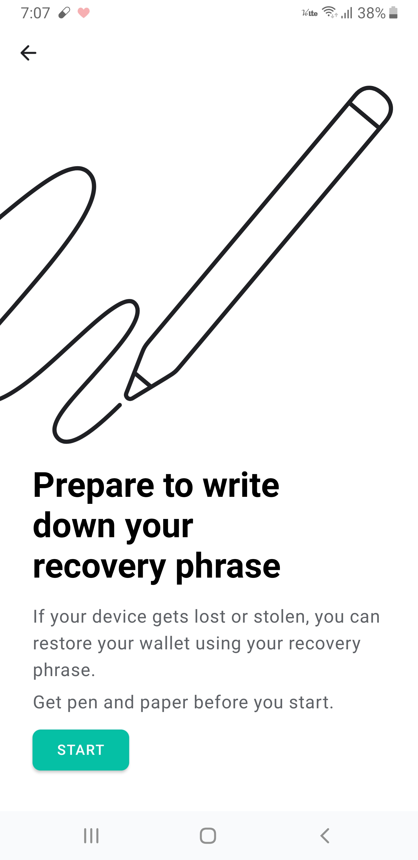 'Create a wallet' 클릭 | 비밀번호 생성 | 비밀번호 확인 | 지문 등록 |