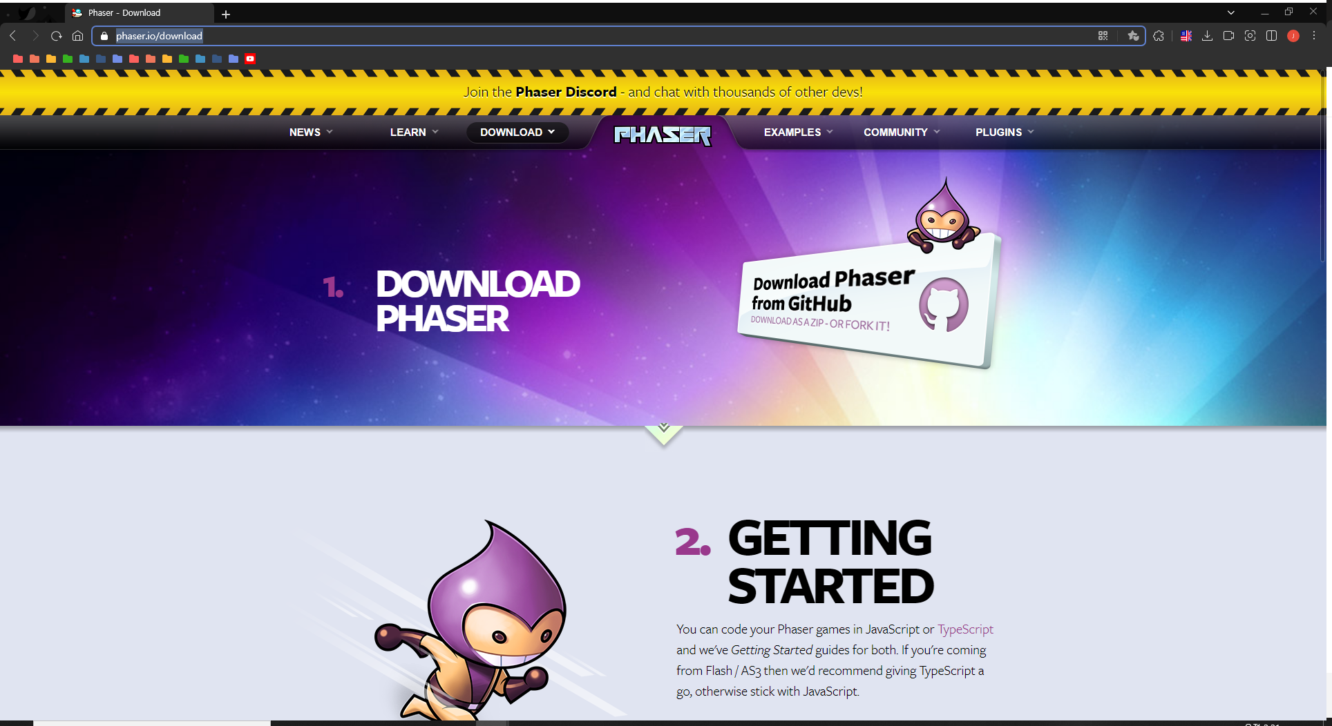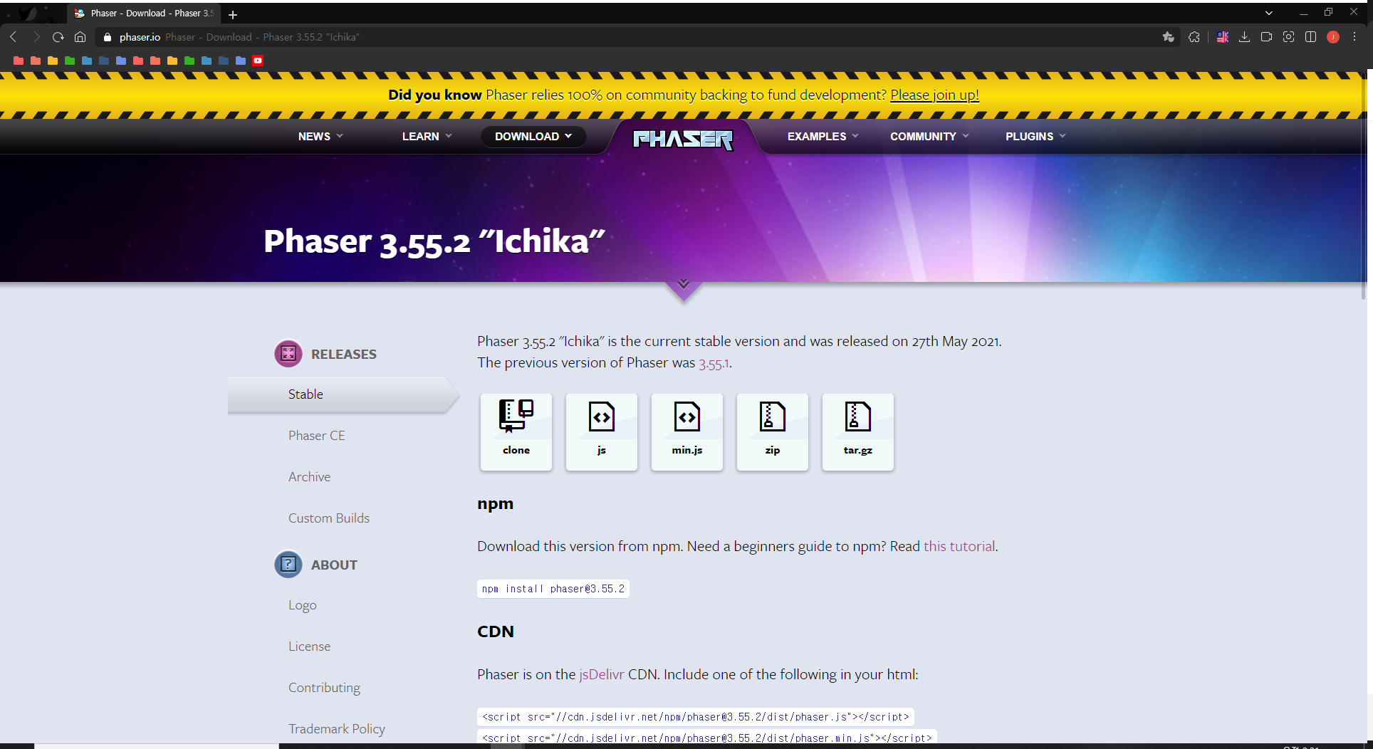 Download phaser 클릭 후 js 또는 min.js 클릭