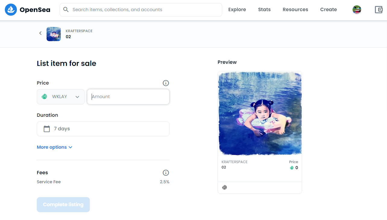 (3) 정보를 입력하였다면 Complete listing 클릭 |