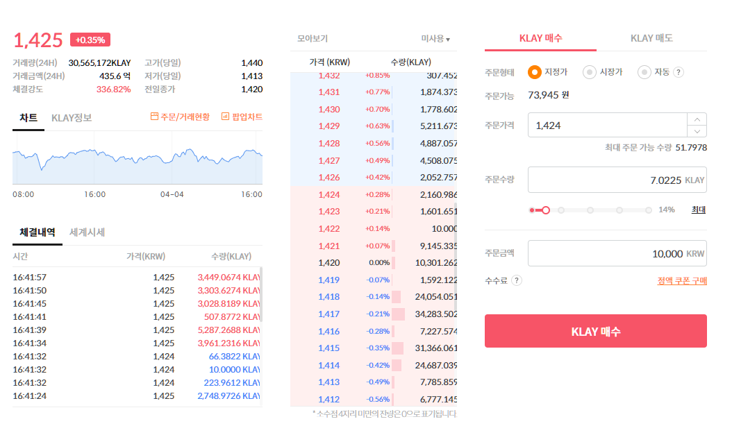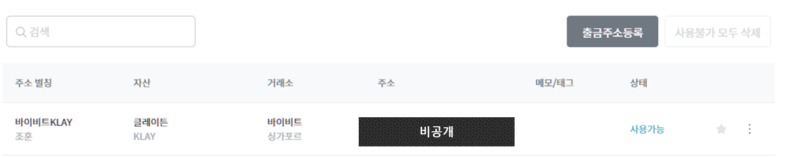 | #4. 빗썸 거래소에서 KLAY 구매 -> 바이비트로 전송 | |