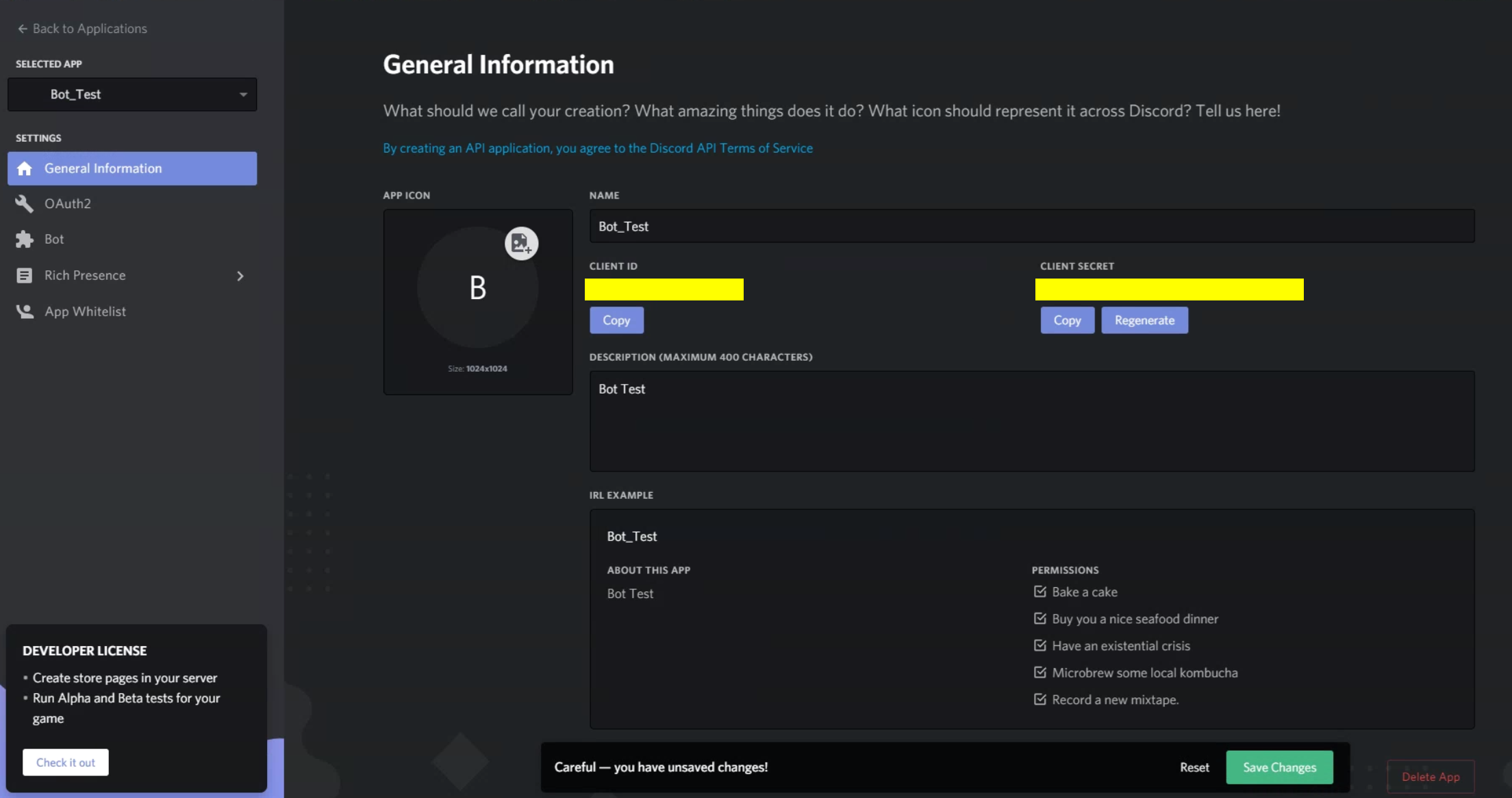 - 개발자 페이지 : https://discordapp.com/developers/applications/